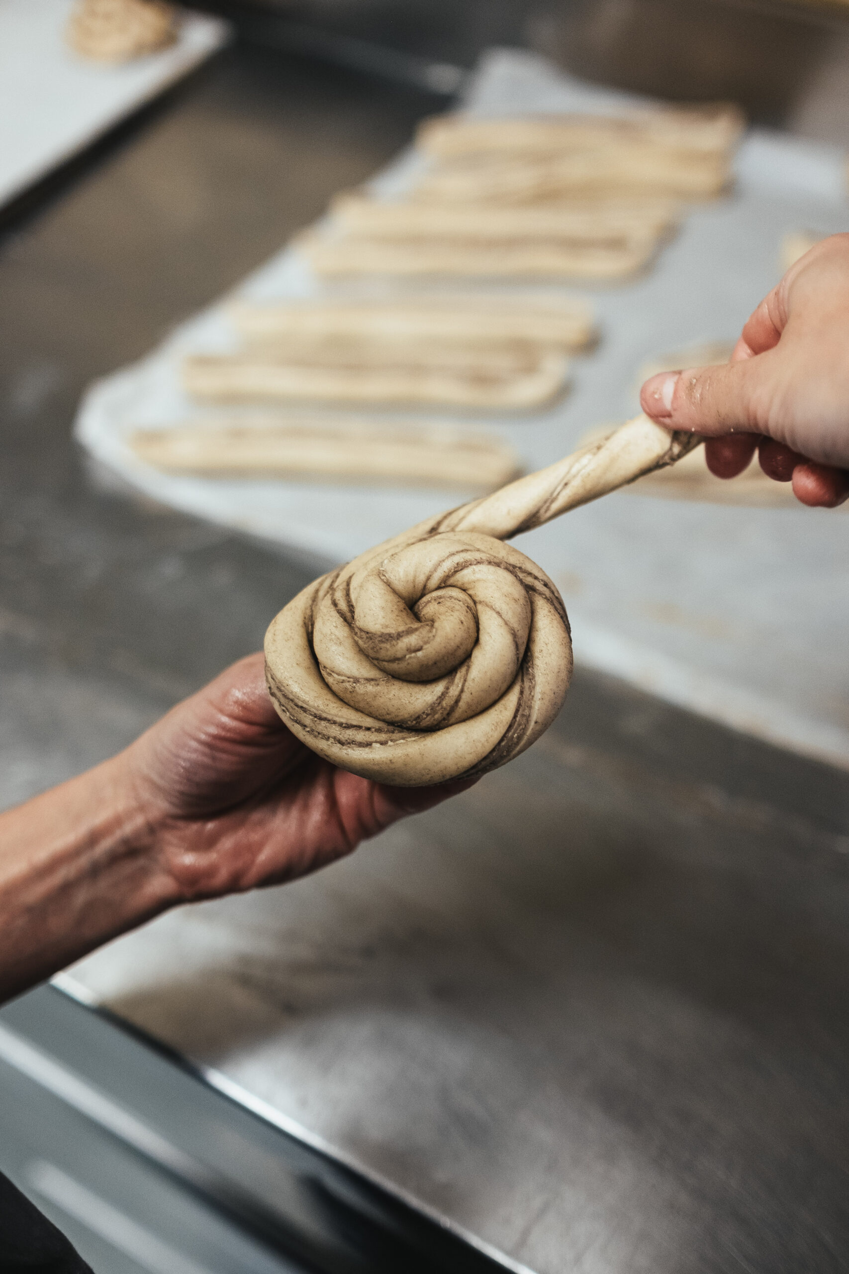 V našej pekárni používame niekoľkogeneračné kvásky. V kamenej peci z nich potom pečieme rôzne druhy vlastného chleba, bagety, rožky, kváskové croissanty aj škoricové a karadamónové drdoly.